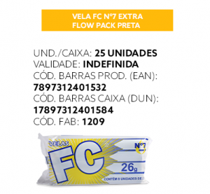 Vela FC extra flow pack preta para uso doméstico.