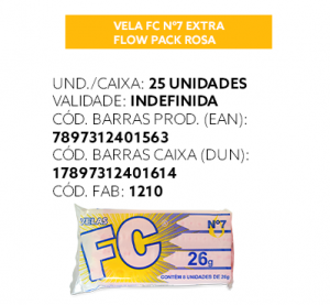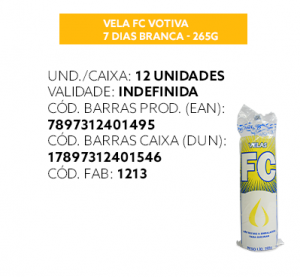 Vela FC extra cartucho para uso doméstico e tradições religiosas.