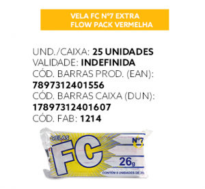 Vela FC extra flow pack vermelha para uso doméstico.